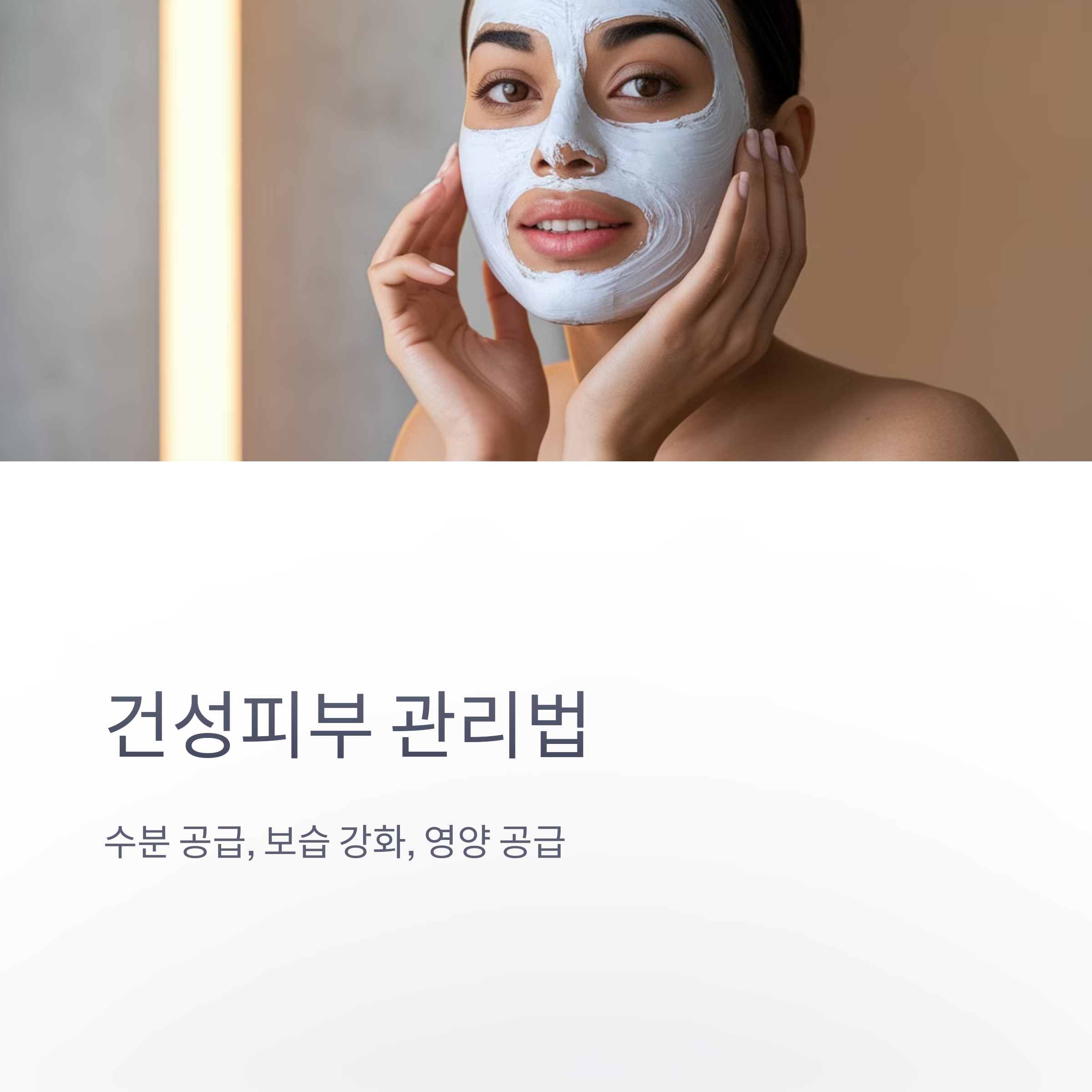건성 피부는 유분과 수분이 모두 부족한 상태예요. 세안 후 바로 수분크림을 발라야 피부 속 건조를 막을 수 있어요. 또한, 알코올이 포함된 토너보다는 히알루론산, 세라마이드가 포함된 보습 제품을 선택하는 것이 좋아요.